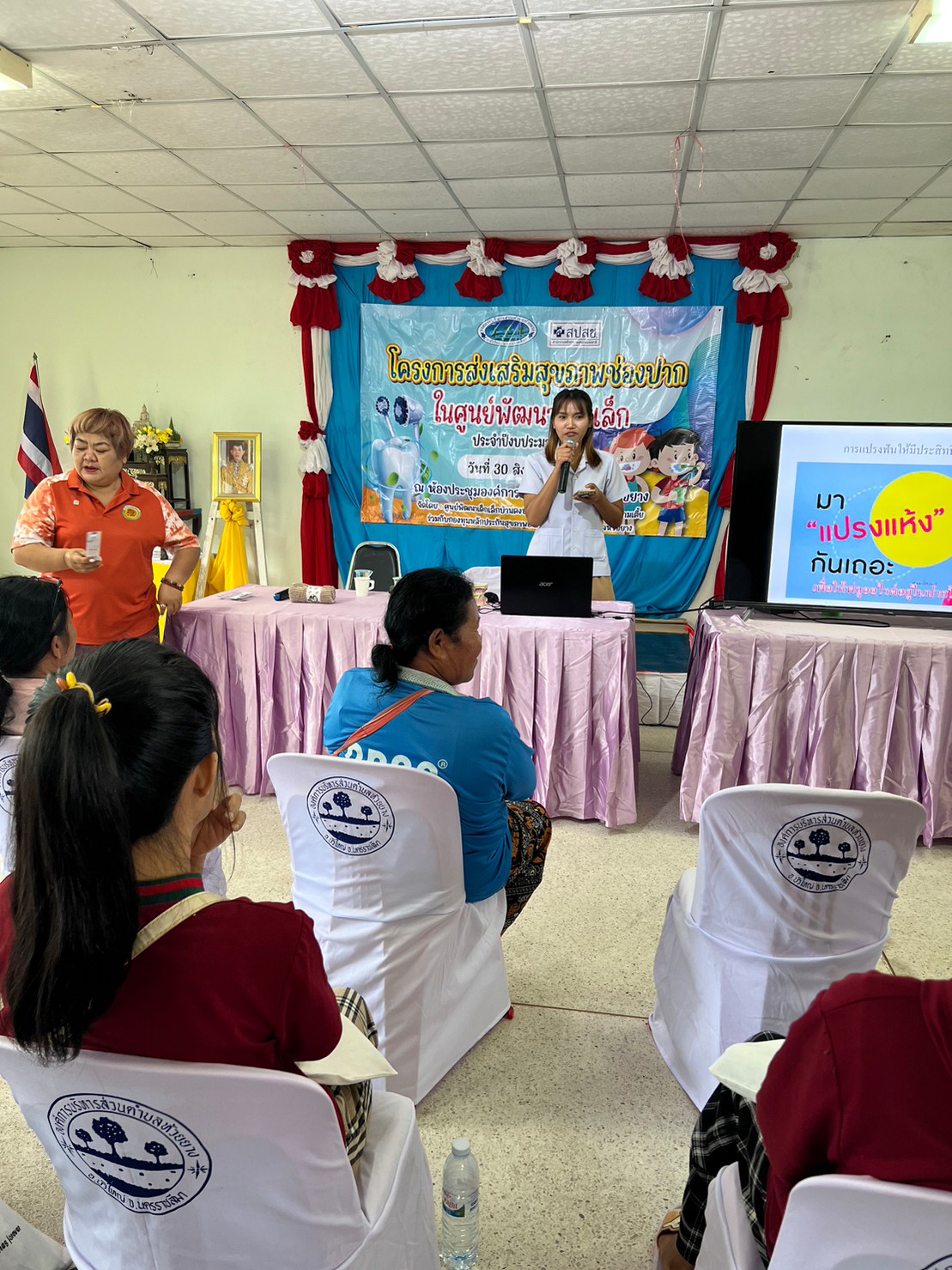 วันที่ 30 สิงหาคม 2566 ศูนย์พัฒนาเด็กเล็กบ้านดงบังและศูนย์พัฒนาเด็กเล็กบ้านขามเตี้ย จัดอบรมโครงการส่งเสริมสุขภาพช่องปากในศูนย์พัฒนาเด็กเล็ก ประจำปีงบประมาณ 2566 โดยมีนายศิริพงษ์ ขอเสริมกลาง รองนายกองค์การบริหารส่วนตำบลให้เกียรติเป็นประธานเปิดการอบรม